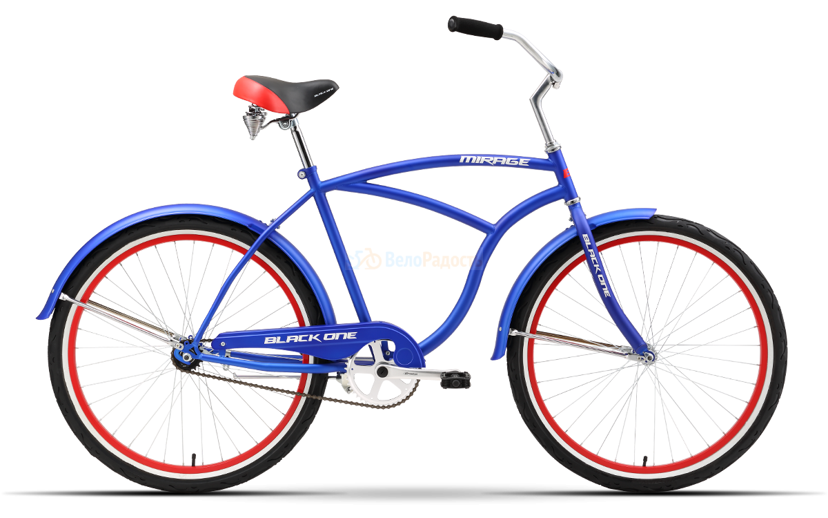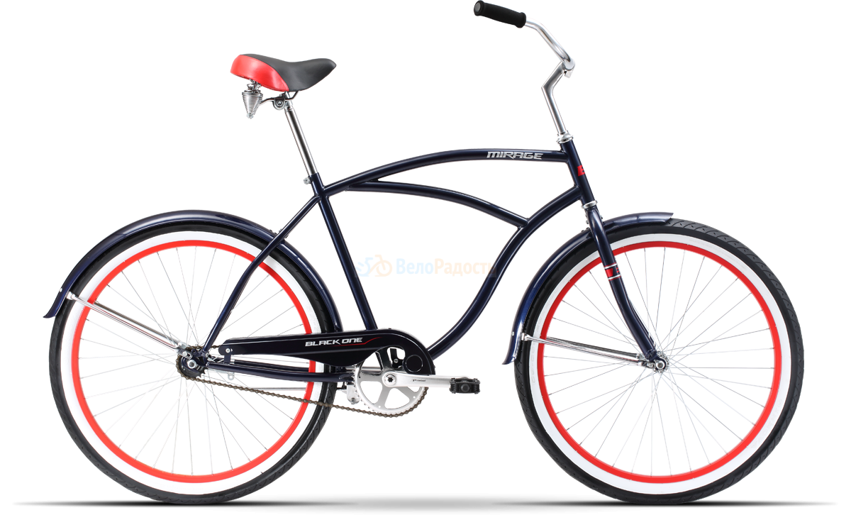 Black One Mirage (2018) - Мужской круизёр для максимально комфортного катания в городе и в парках. Геометрия рамы идеальна для неспешных велопрогулок. Прочные двойные обода, ножной тормоз. В комплекте: крылья, подножка, камеры с автомобильным ниппелем, светоотражатели.