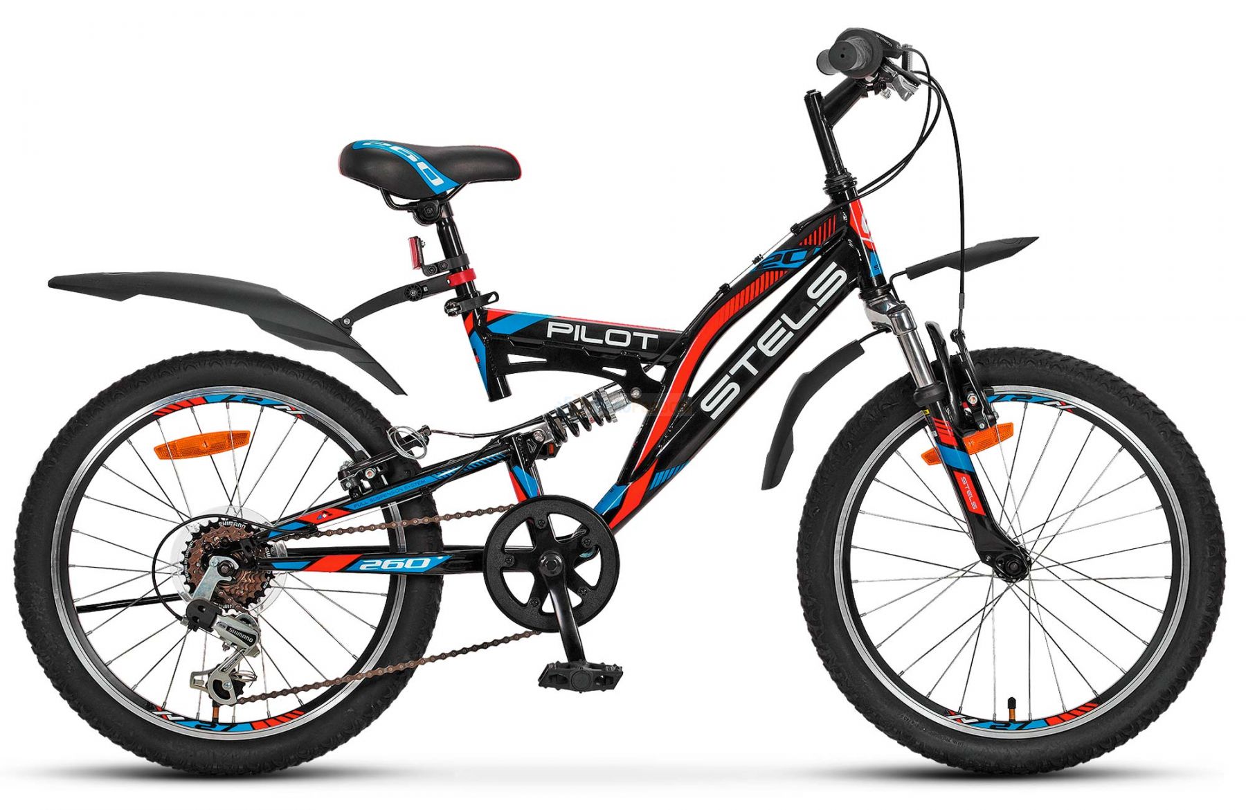 Stels Pilot 260 20 V020 (2018) - двухподвесный велосипед для детей в возрасте от 5 до 9 лет. Это упрощенная версия взрослого велосипеда для путешествий по бездорожью. Stels Pilot 260 оснащён амортизационной вилкой на 30 мм ходу, 6-скоростной трансмиссией, ободными тормозами.
