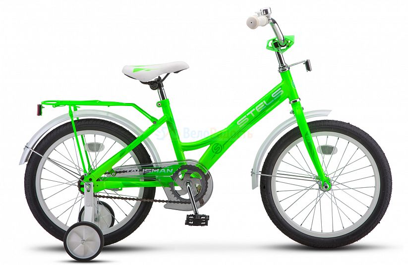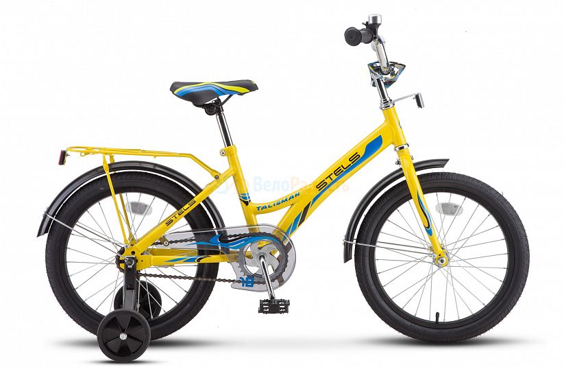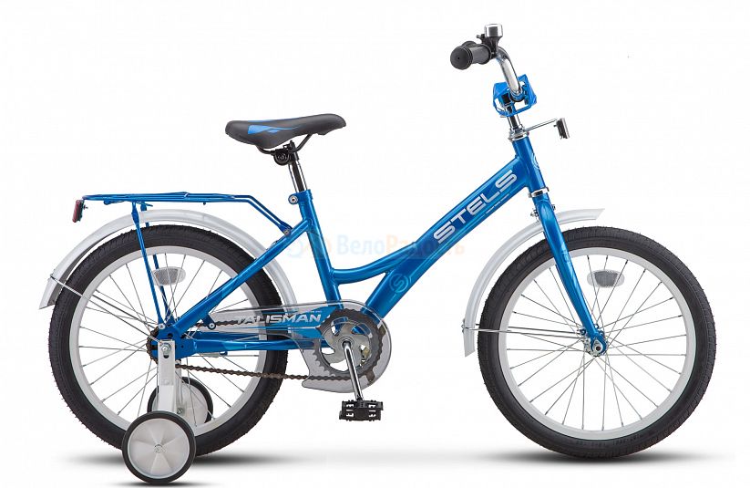 Велосипед Stels Talisman 18 Z010 для детей от 5 до 9 лет. Стальная рама и жёсткая стальная вилка. Съёмные боковые колёсики помогут в обучении катанию. Высокий руль и эргономичное сиденье обеспечивают комфортную посадку. Руль регулируется как по высоте, так и по углу наклона. Задний ножной тормоз. Полная защита цепи, мягкие накладки на руле, клаксон - всё это сделано для безопасного катания Вашего ребёнка. В комплект велосипеда входят: стальные крылья, багажник и звонок.